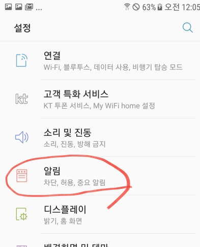 알림을 선택한다.