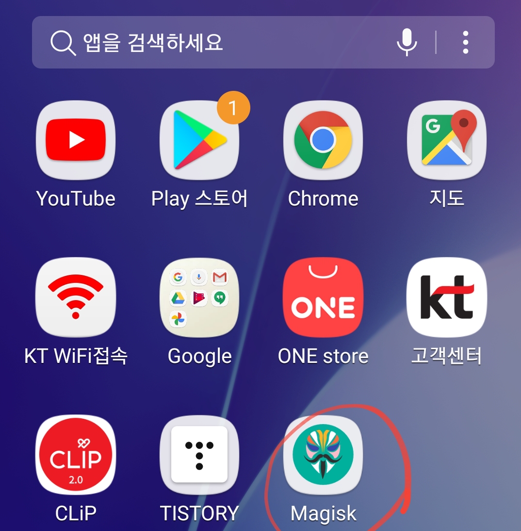 부팅이 완료되면, 루팅이 완료된 것이다. 루팅이 완료된 화면에는 Magisk 라는 앱이 하나 만들어져 있다.