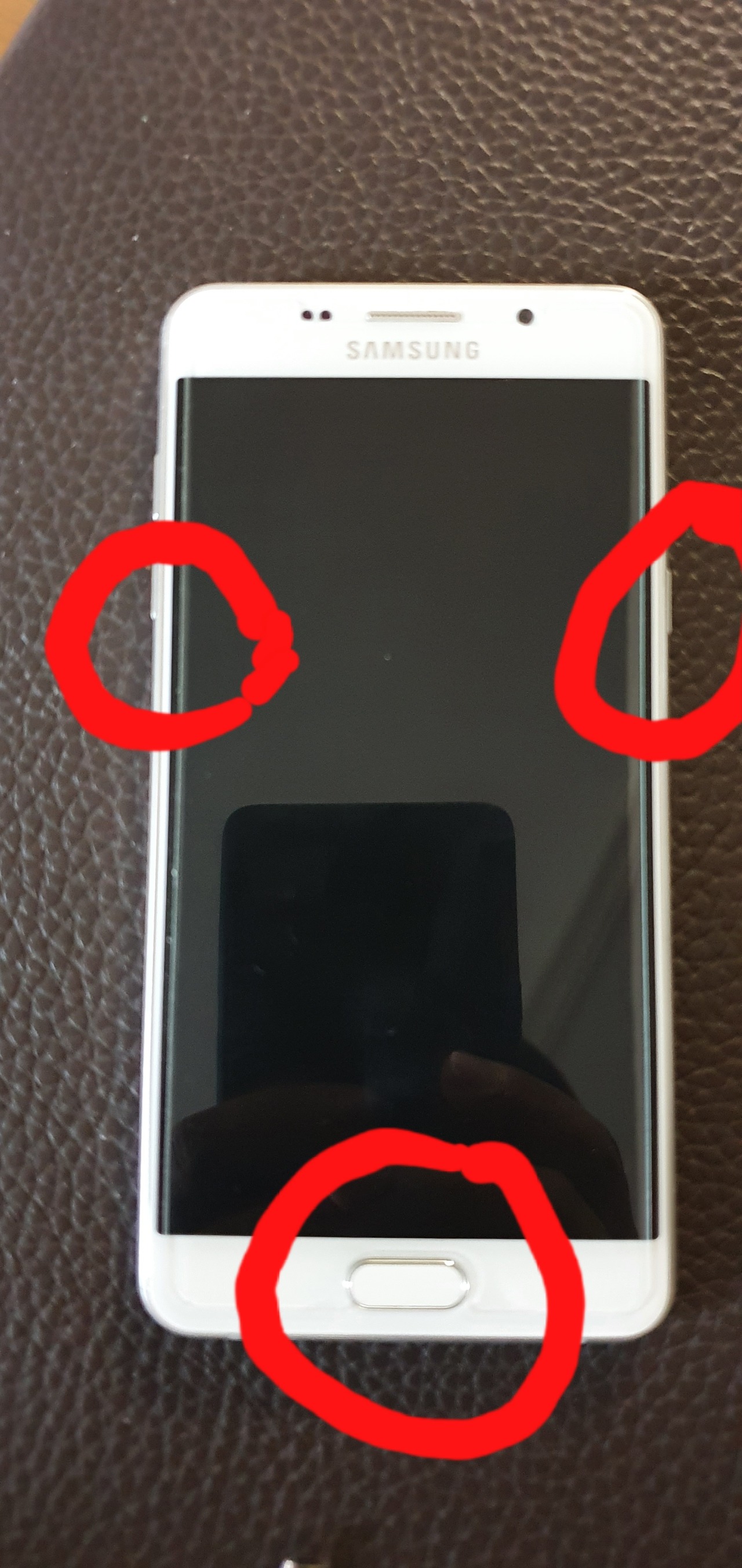 폰의 전원을 종료한 후에, 다운로드 모드로 켠다. 아래와 같이 3가지 버튼(전원, 홈버튼, 볼륨-)을 같이 누른 채로 수초 있으면 휴대폰이 다운로드 모드로 켜지게 된다.