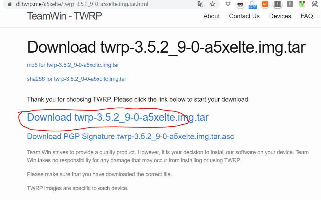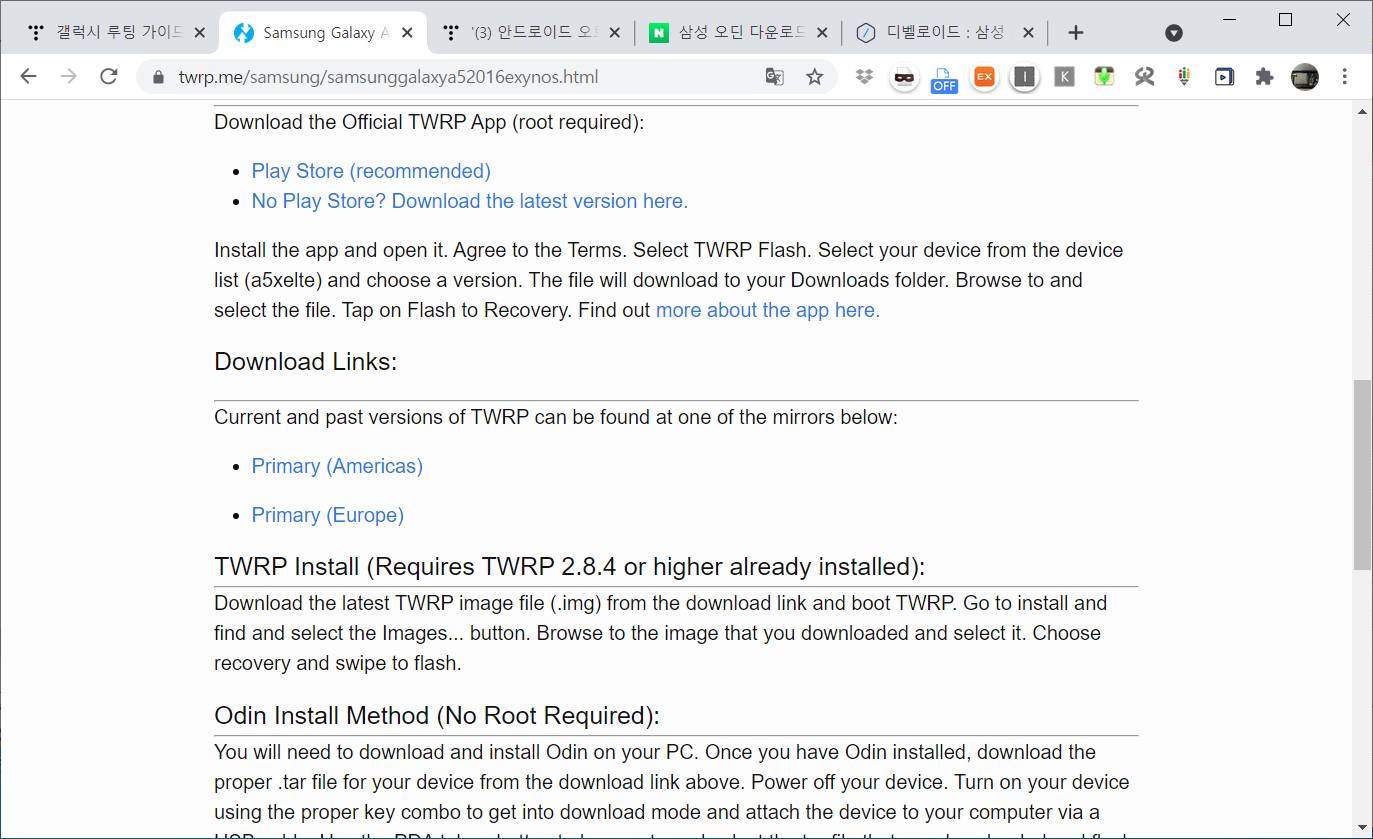 오딘을 먼저 설치한 후, 아래의 주소에서 TWRP 이미지를 다운로드 받는다.