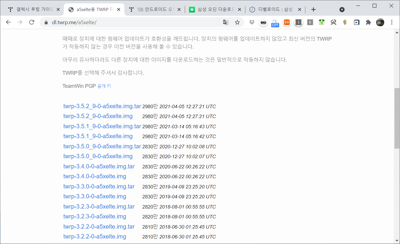 오딘을 먼저 설치한 후, 아래의 주소에서 TWRP 이미지를 다운로드 받는다.