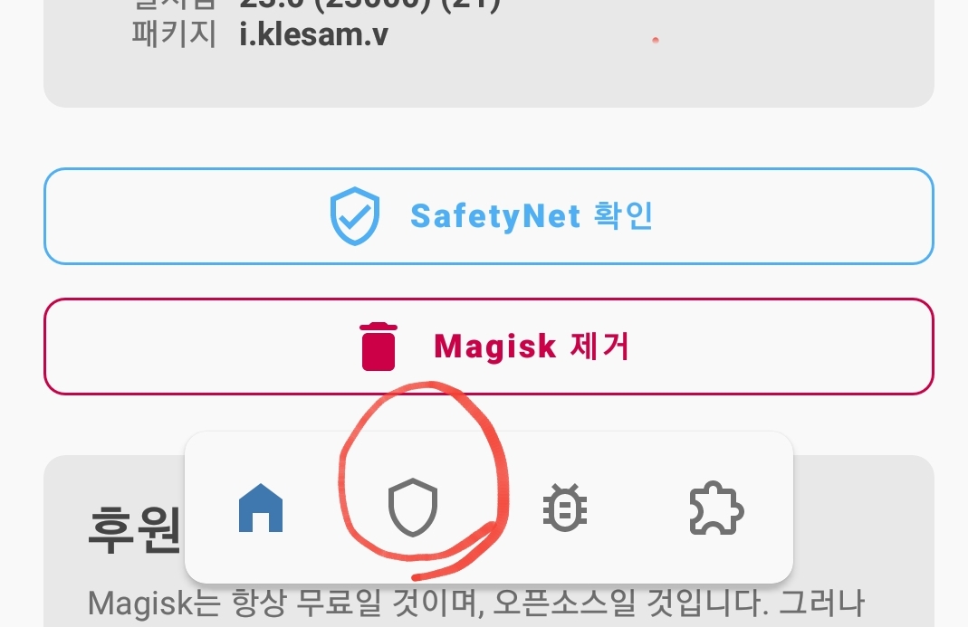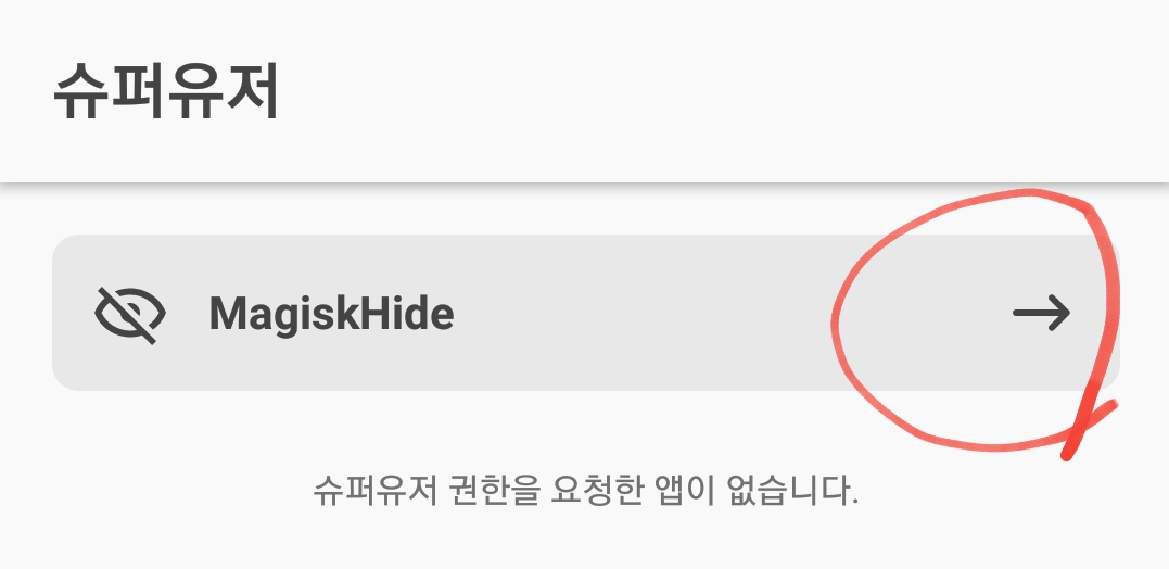 magisk앱을 실행해서 이를 속이도록한다. magisk앱이 안보이면, 위에서 이름 변경한 앱이 있는지를 찾으면 된다.