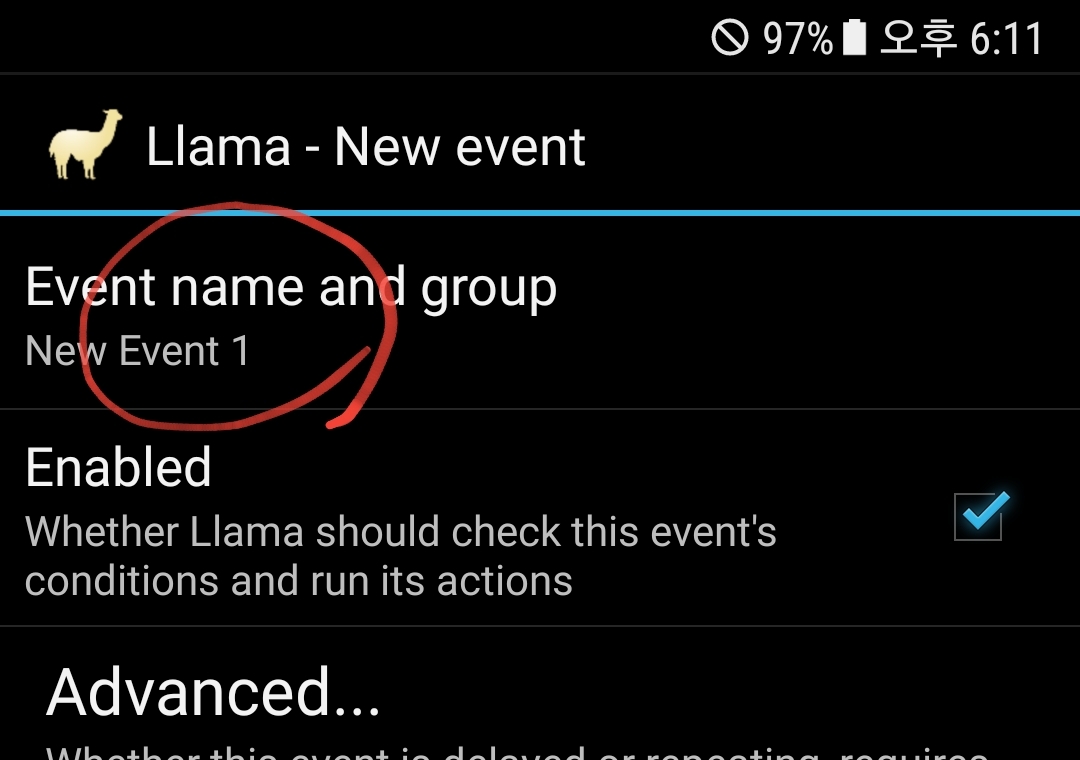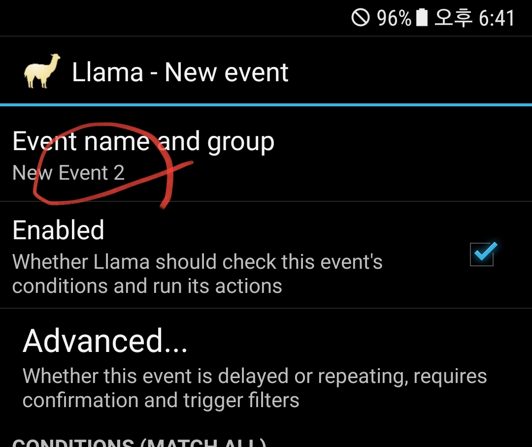 llama앱의 이벤트 메뉴를 선택하고, 목록에 있던 룰 들은 선택해서 삭제를 한다.
