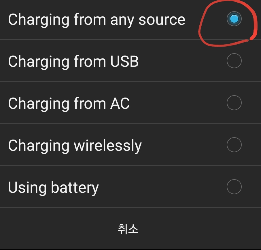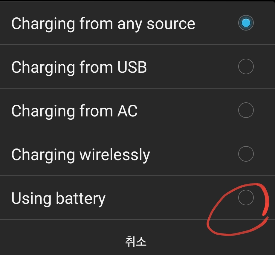 맨 아래의 "Using battery"를 선택한다. 배터리를 사용했을 조건을 선택한 것이다.