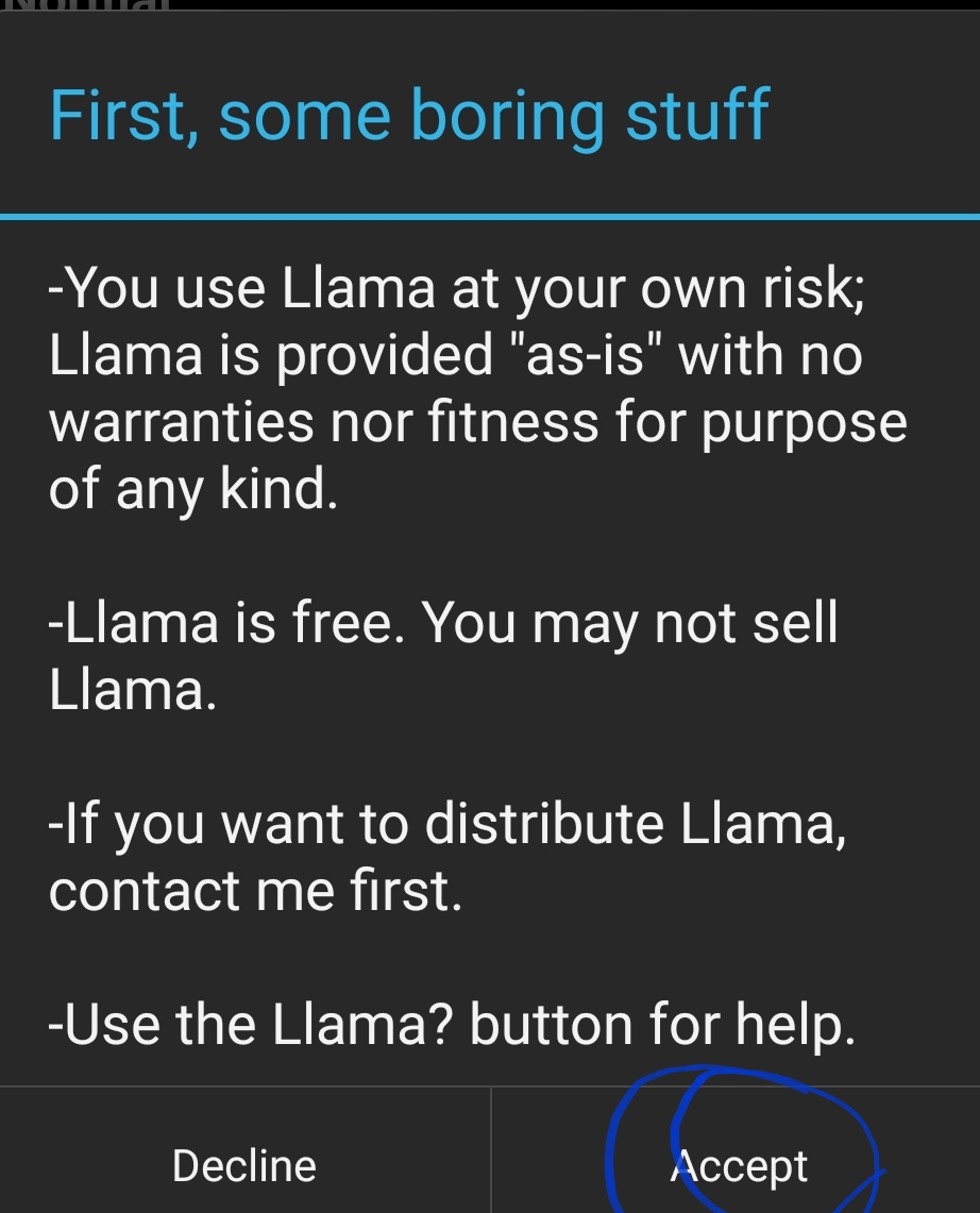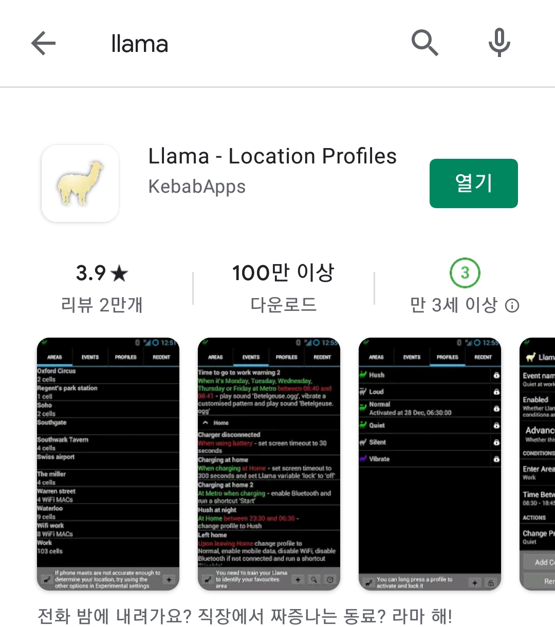 플레이스토어에서 llama앱을 다운받아서 실행해보자.