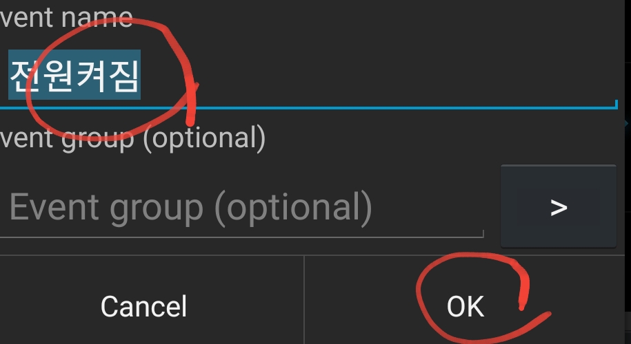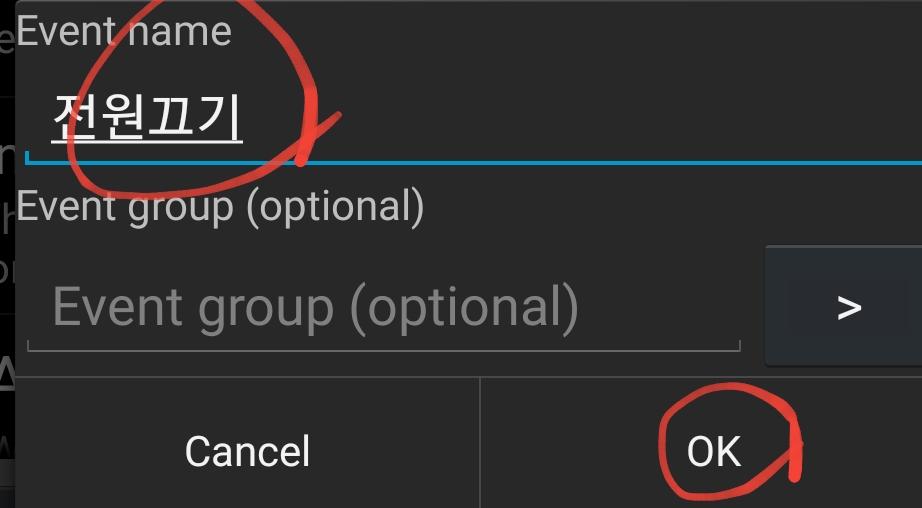 이벤트 이름을 "전원 끄기"로 입력하였다.