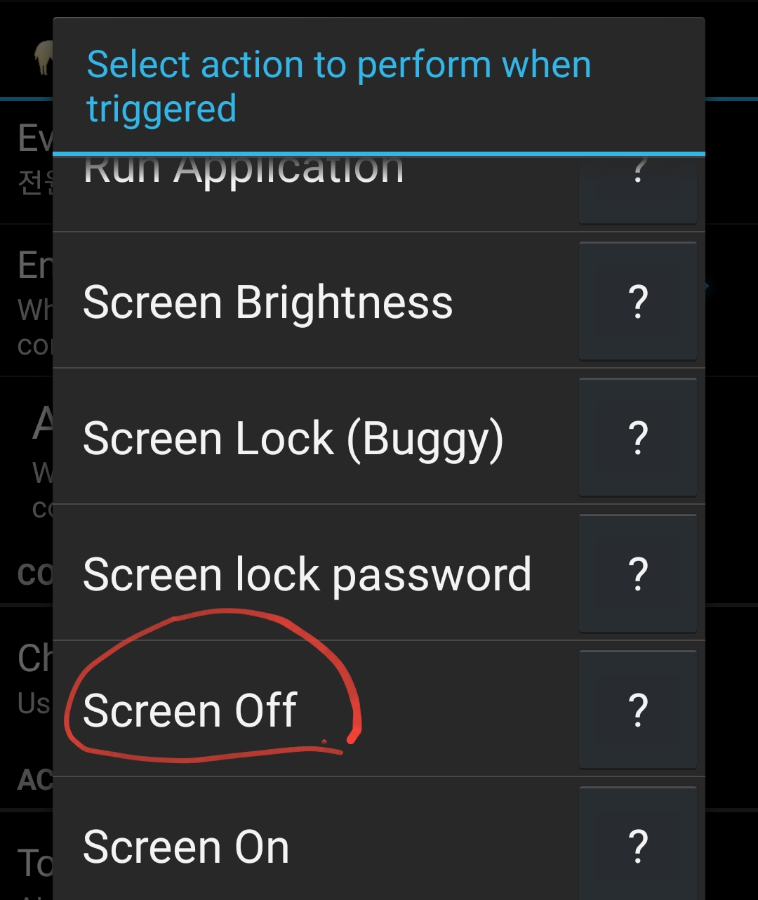 동일 방법으로 액션을 하나더 추가한다. 스크린을 끈다.