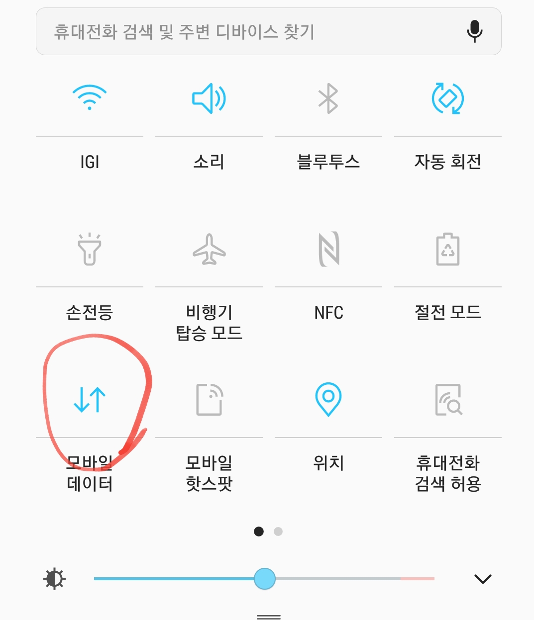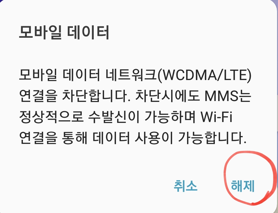 모바일 기능을 사용 안할 것이니, 모바일 데이터 기능을 끈다.