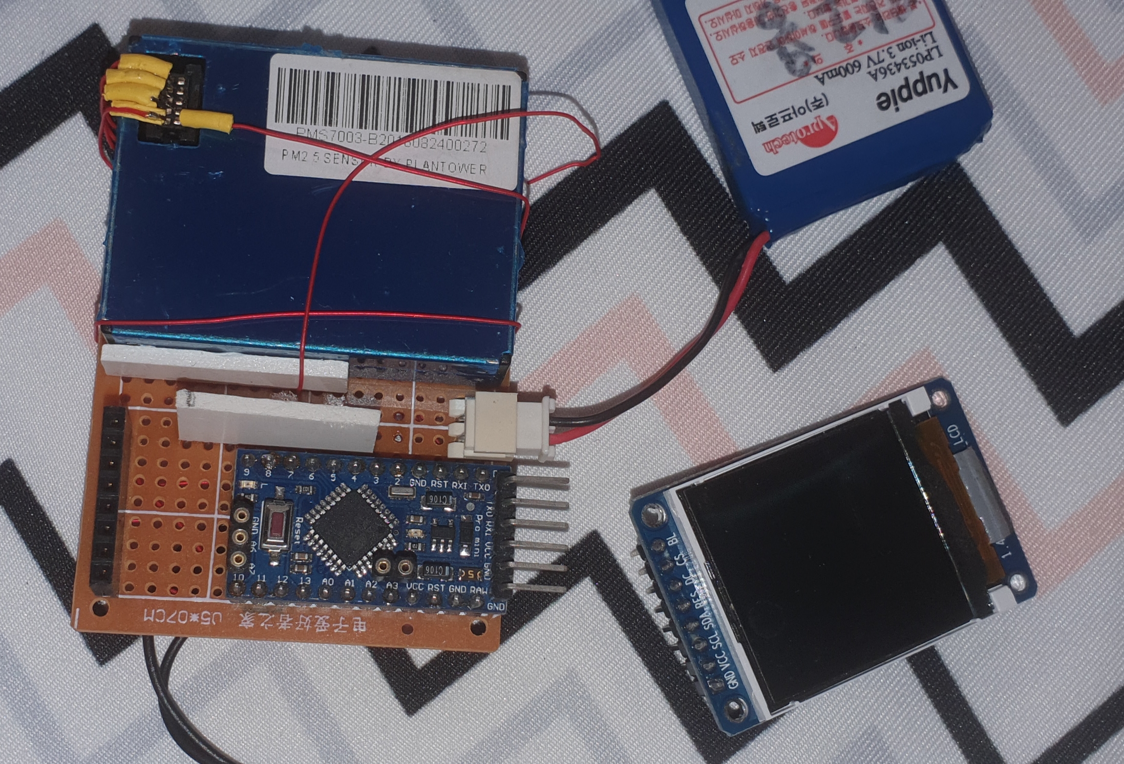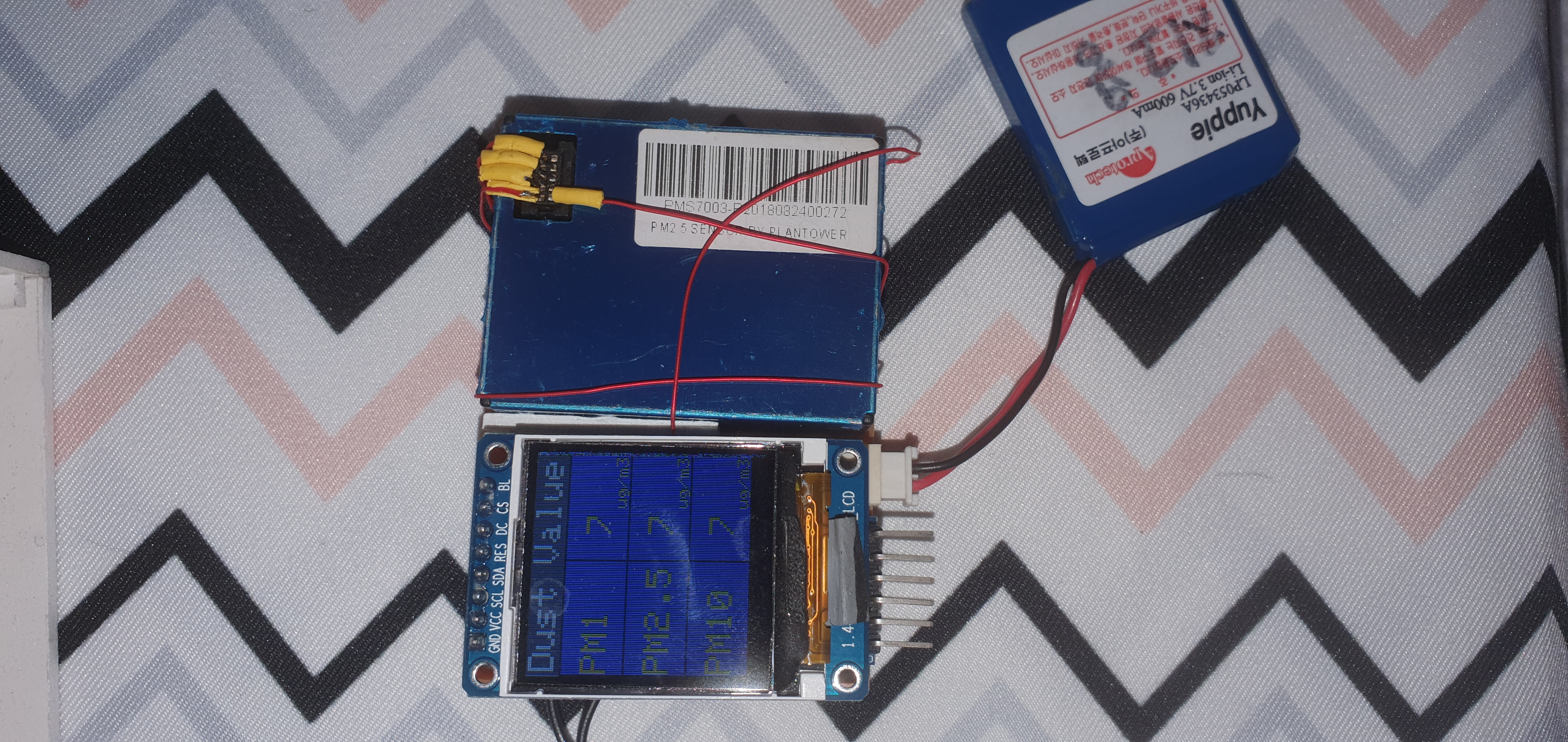 TFT-LCD와 먼지센서 연결에는 일반적인 커넥터 및 핀헤더를 사용하였다.(특별한 언급 아님)