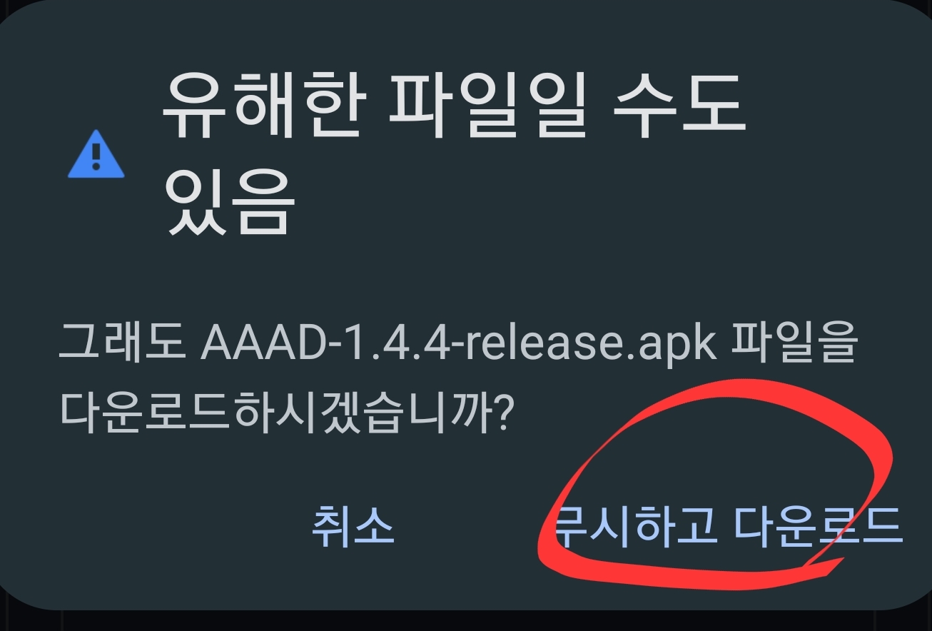 다운로드 받기 전에 아래의 경고화면이 나온다. 당연히 인증 안된 앱이라서 경고를 주는 것이 당연한 것인데, 내 니즈가 있으니 무시하고 다운로드를 한다.
