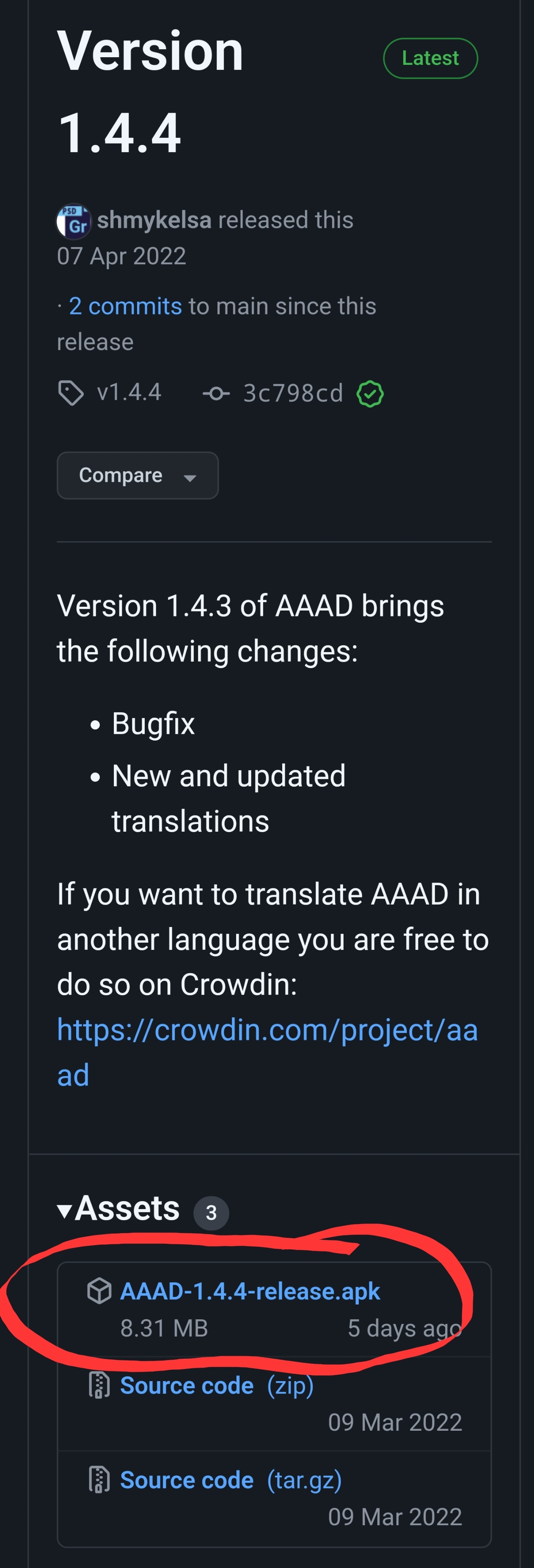 3. 갤럭시를 차에서 분리한 후, AAAD라는 앱을 다운받아 설치한다. 이 앱은 구글 검색하면 다운로드 받을수 있는 주소를 찾을수 있는데, 아래의 개발자가 올리는 곳에서 직접 받도록 하자. https://github.com/shmykelsa/AAAD/