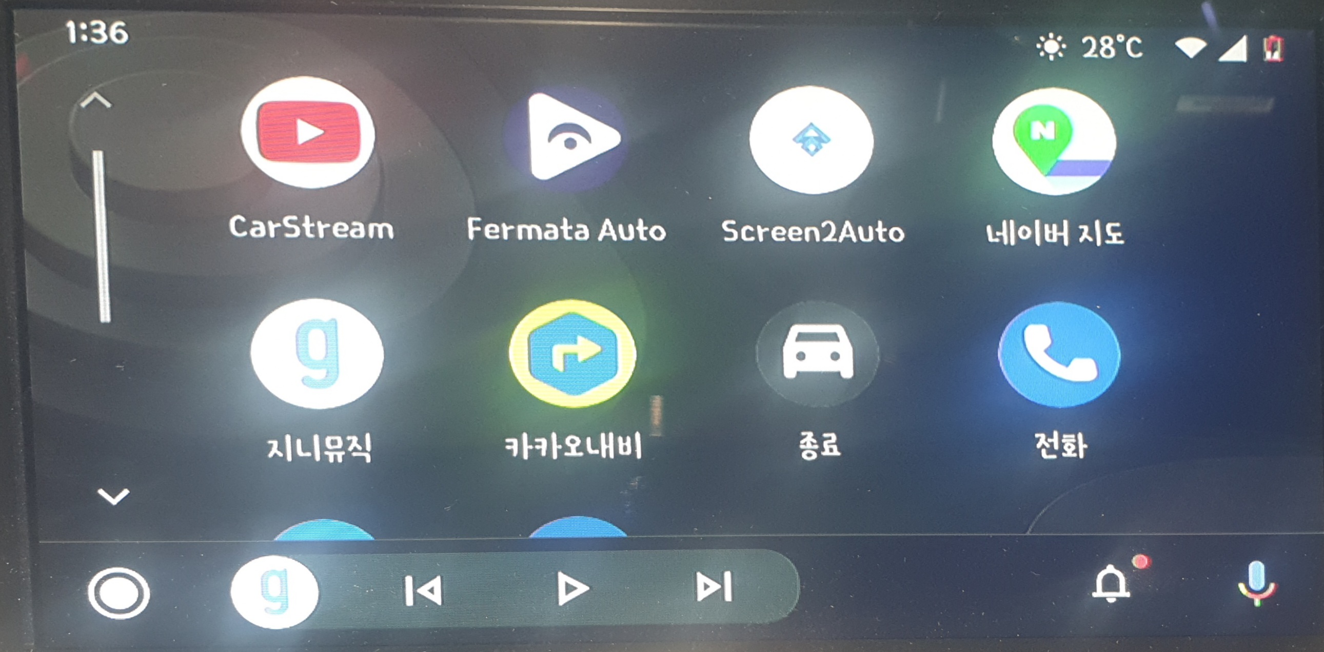 앱들을 설치해서 사용해봤지만, 루팅을 하지 않은 조건에서는 screen2auto가 잘 작동되지 않았다. 제일 나은 앱이 FermataAuto로 생각된다.
