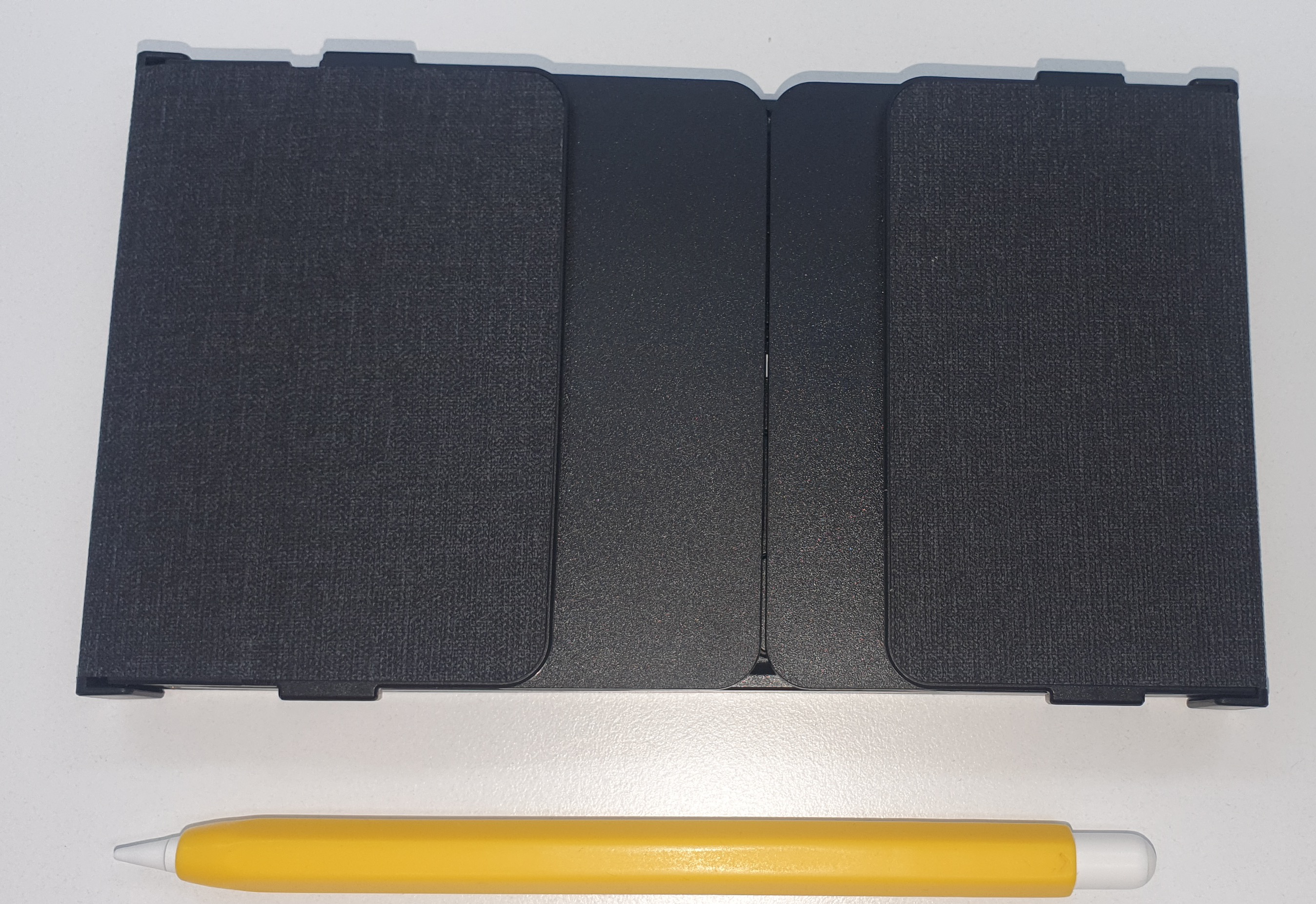 펼쳤을 때의 전체 모습이다. 사진에는 없지만, 상단에 C타입 충전단자와 전원 ON/OFF스위치가 있다. 사용하지 않으면 10분 지나면 자동으로 대기상태로 전환된다고 한다.