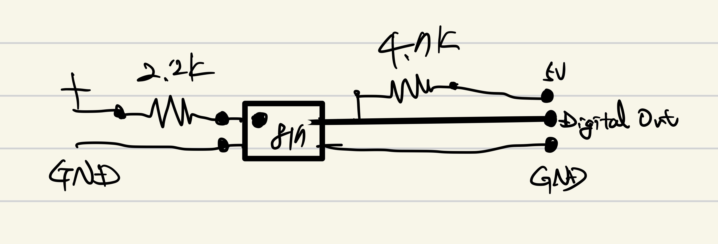그 다음은, 젯근나노에서 차량 시동이 꺼진 것을 인지하도록 만들어보자. 위에서는 차량 시동이 꺼지면 120초 동안 전원이 추가로 유지되도록 하였다. 이 시간동안에 젯슨나노에서 시동이 꺼진 것을 인식해서 자동으로 shutdown 명령어를 실행하도록 해야하는데, 젯슨 나노에서 인식할 수 있는 회로를 아래에 구성해본다. 이 회로의 모듈은 판매가 되ㄹ수도 있는데, 너무 간단해서 부품을 사서 납땜해서 만들어보았다. 회로는 아래와 같다.
