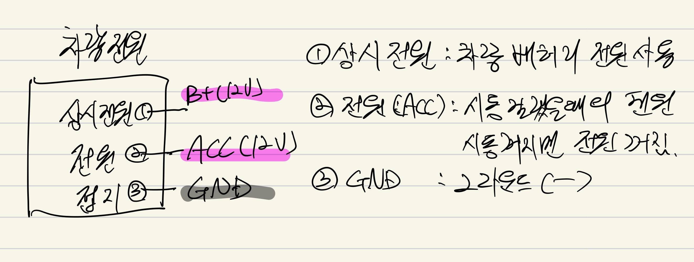 차량 전원은 아래와 같다.