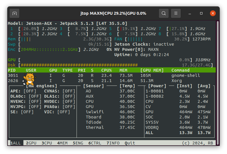 $ jtop 을 실행하면, 아래의 화면이 출력된다.