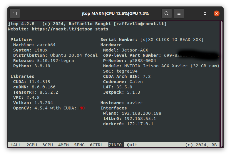 설치가 완료된 후에, jtop으로 확인을 하면, Libraries에 설치된 것들이 표시된다.