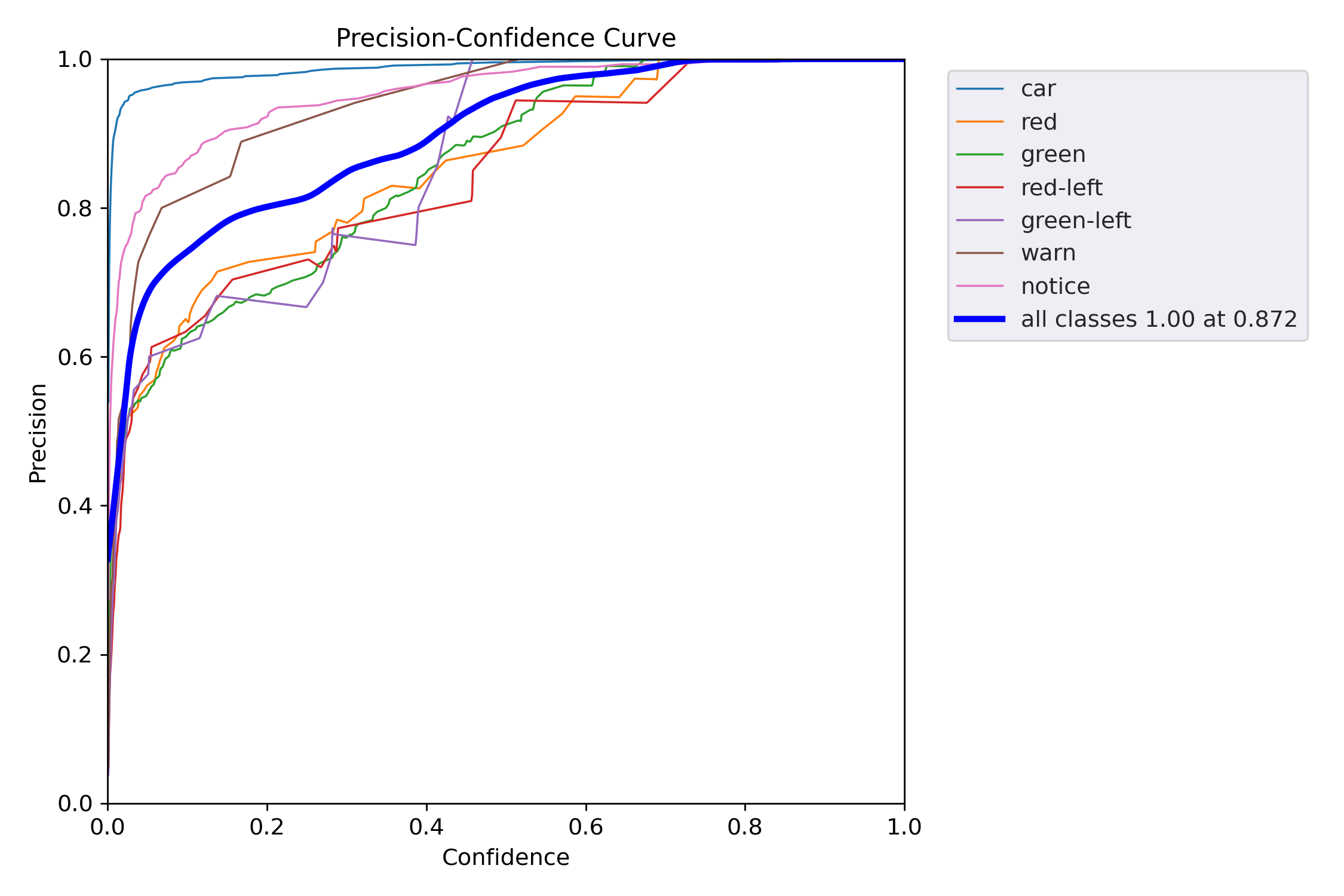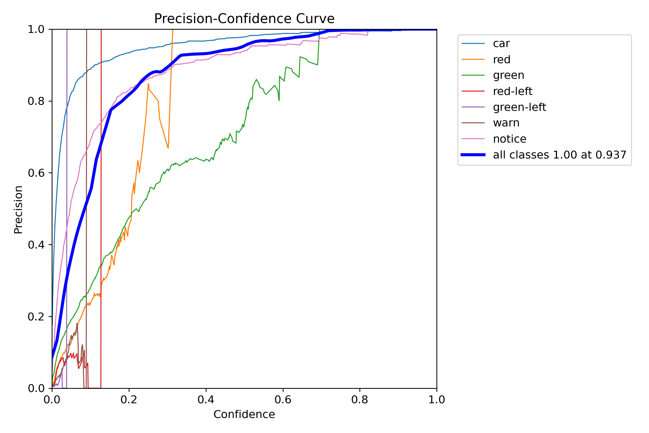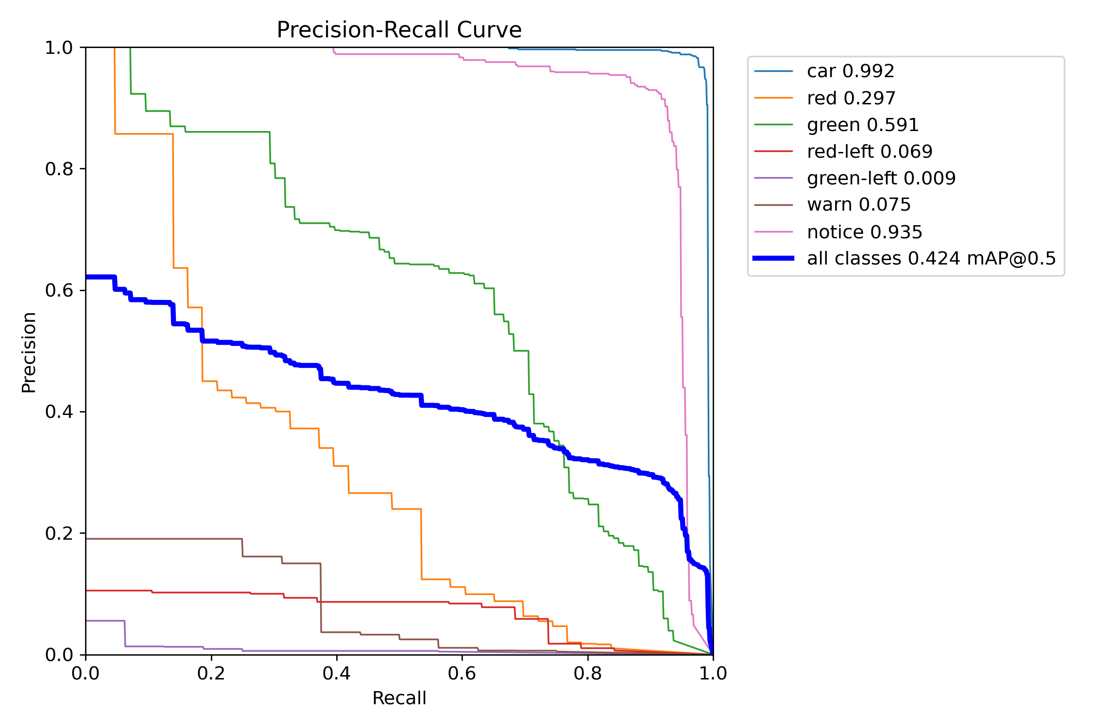 학습 완료 후의 결과를 확인해봤는데, 정확도가 많이 떨어진다. 인식을 정확히 해야 하는 것이 car, gree, red-left, green-left에 대한 인식을 정확히 해야지 출발을 알려줄 수 있다.