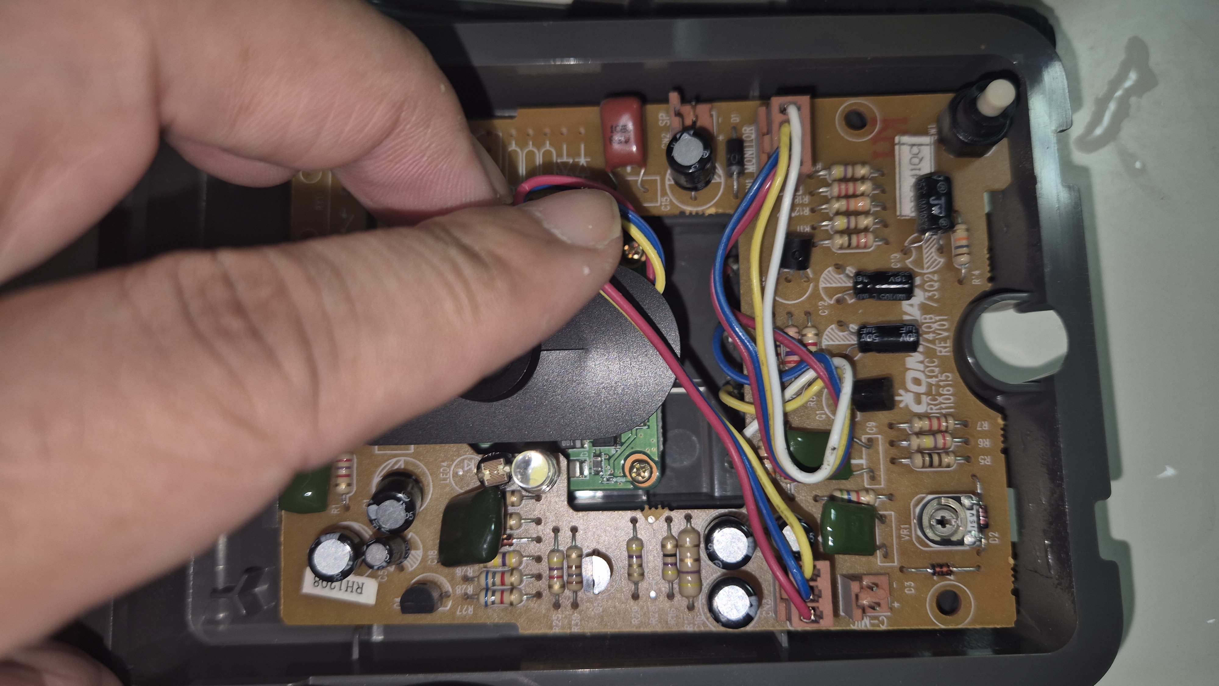 케이스를 열면 앞면에 마이크와 스피커가 있는 붙어 있는데, 연결된 커넥터를 뽑아둔다. 물론 뽑기 전에 사진을 꼭 찍어두고 나중에 다시 원상복구할 수 있도록 해야한다. 물론, 사진을 안 찍어둬도 서로 잘못 꽂을 일이 없겠지만...