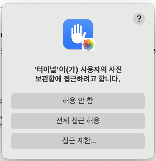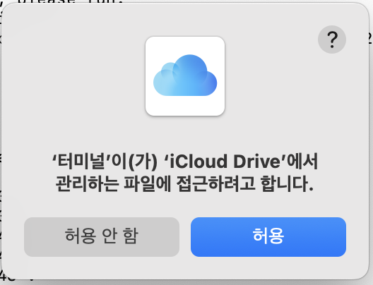5. 다시, "4"에서 사용한 것 처럼, 다시 명령을 입력해보자. 그러면, OSX에서는 팝업이 몇개 뜨면서 권한 승인을 하라고 한다. 아래와 같은 동의 받는 화면이 4개가 뜬 것 같다.