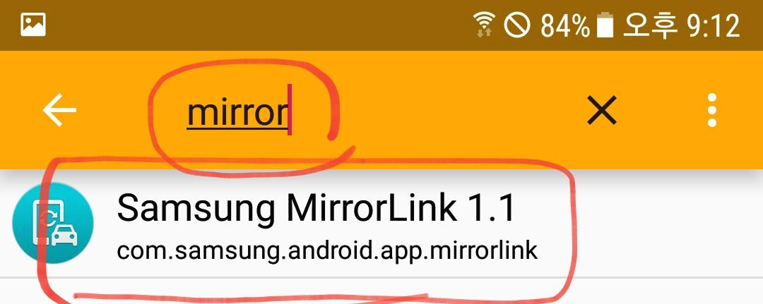 검색어를 "mirror"를 입력하면 "Samsung MirrorLink 1.1"이 표시된다.