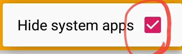 아래와 같이 표시된 "Hide system apps"의 Check를 해제하여, 시스템 앱들이 모두 표시되게 한다.