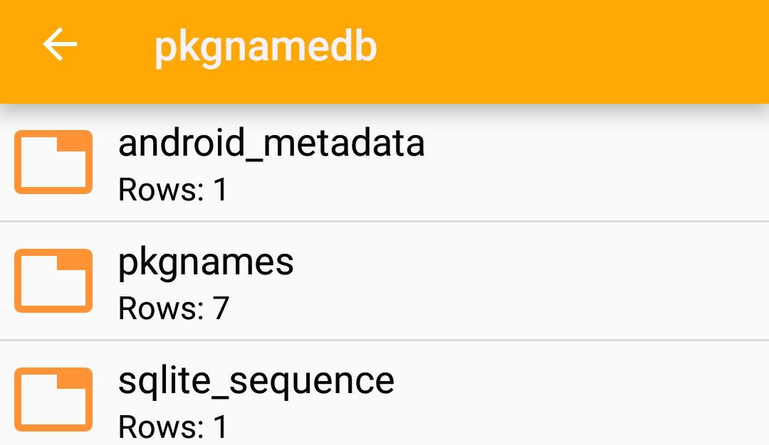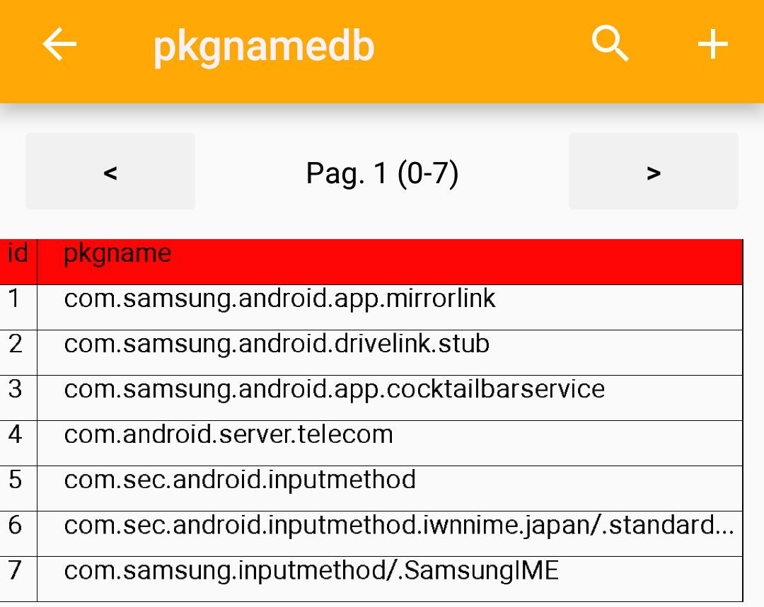 "pkgnamedb"에는 기본적으로는 7개가 들어있다. 아니, 초기화된 내 폰에는 7개가 등록되어있다.