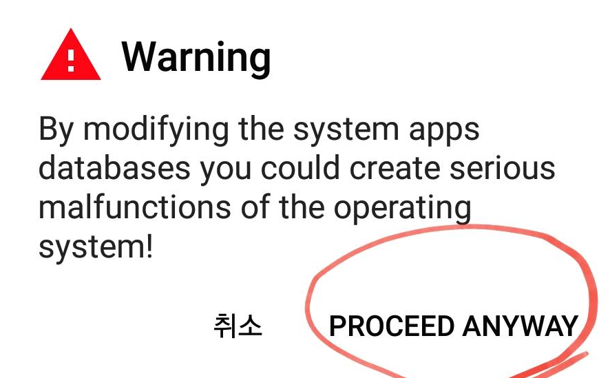 그러면, 무언가 머시기 머시기 하면서 경고창이 뜬다. 어쨌든 진행하는 것으로 아래와 같이 선택한다.