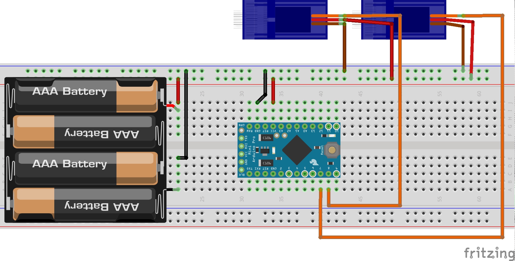 서보모터를 2개를 연결하였다. 제어는 7번과 8번 PIN으로 연결하였다.