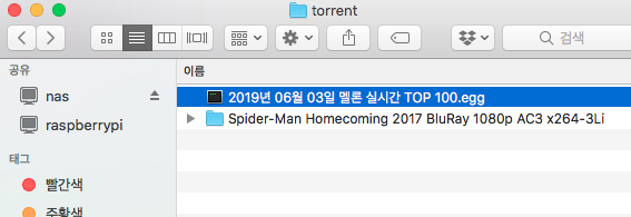 자. 다운로드가 완료되면, NAS의 공유폴더에 다운로드한 파일이 저장되어있는지를 확인해본다. 만일 설정한 폴더에 보관되어있지 않다면, 공유 폴더 설정 및 파일 권한을 재확인해봐야 한다. 아래와 같이 다운로드가 완료된 파일이 보관되어있으면 설정은 완료한 것이다.