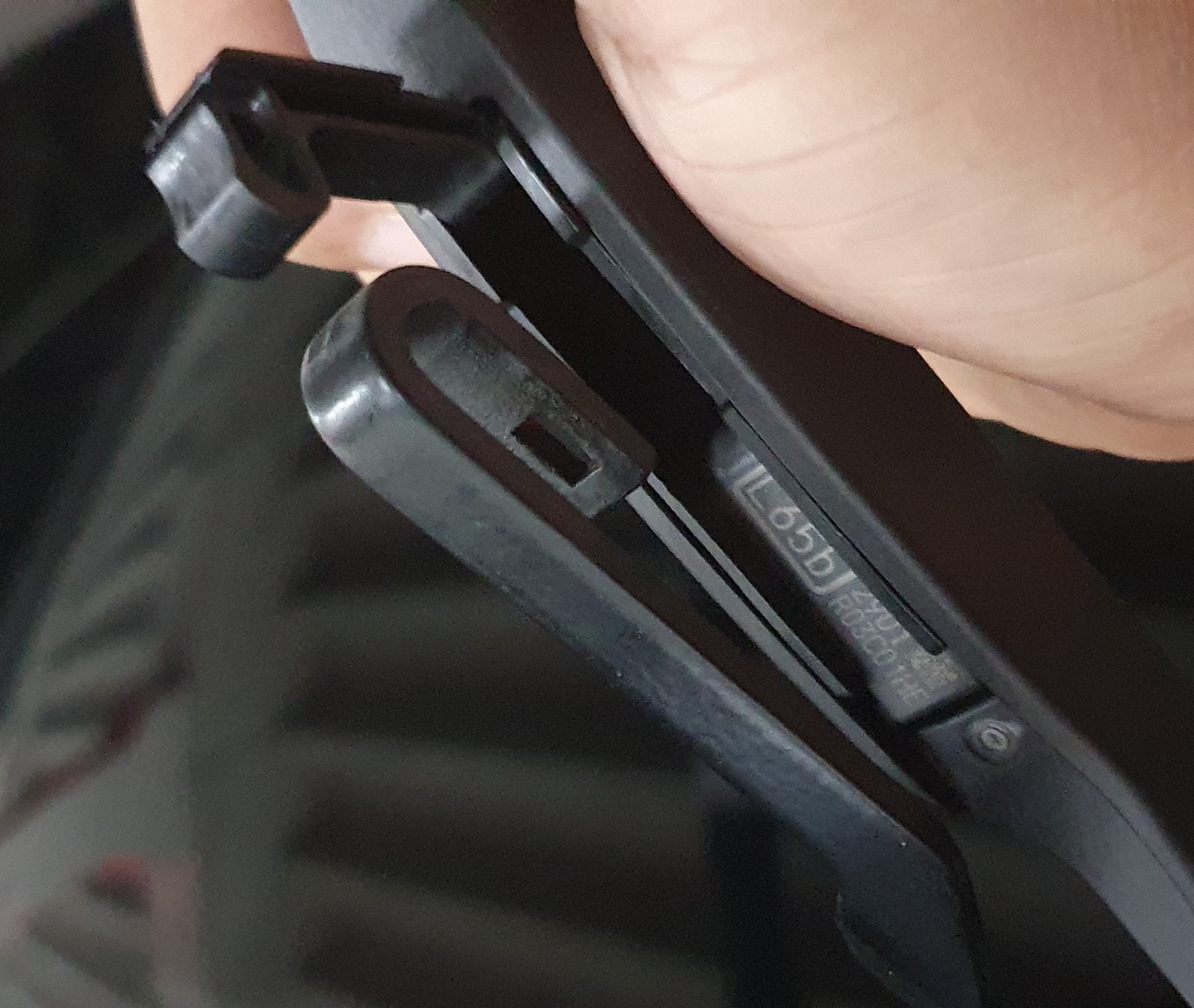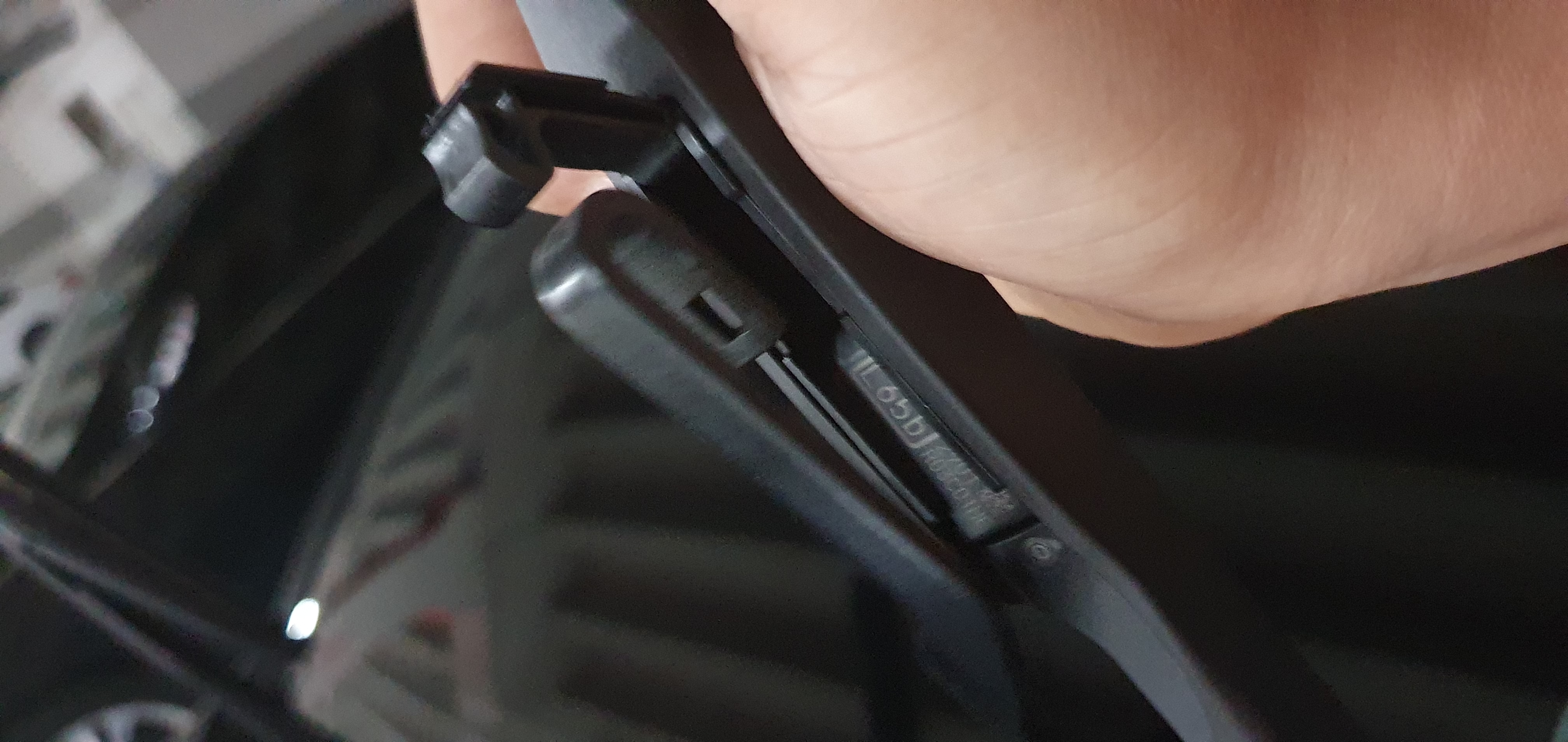 그리고 고무가 붙어있는 와이퍼를 아래로 힘을 주어서 밀면 아래 사진과 같이 걸려진 고리와 분리가 된다.