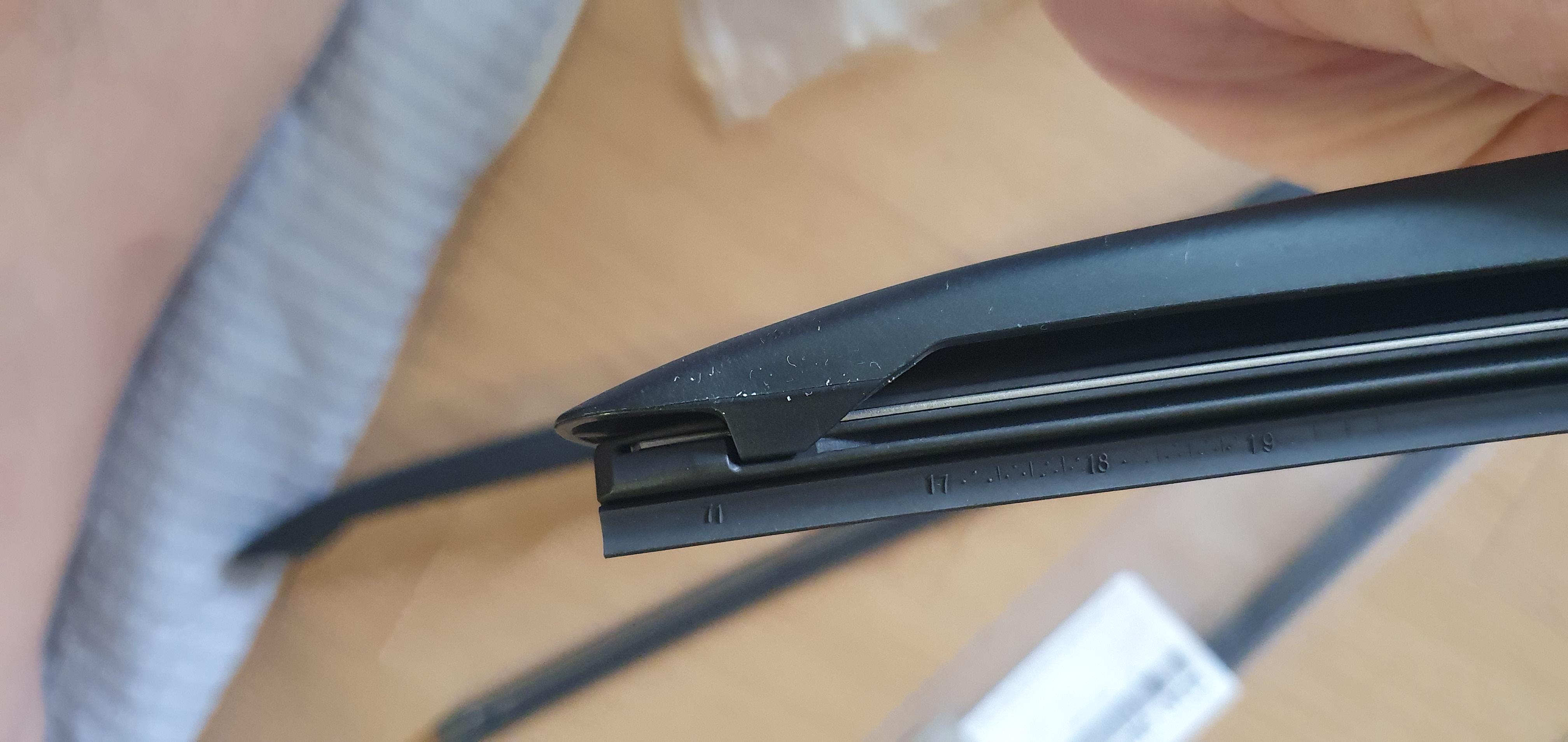 방향성이 있으니 똑같이 끼워야한다. 쇠 프레임의 홈이 있는 부분이 사진과 같이 기존 와이퍼 프레임의 고리 걸리는 방향쪽으로 와야한다.