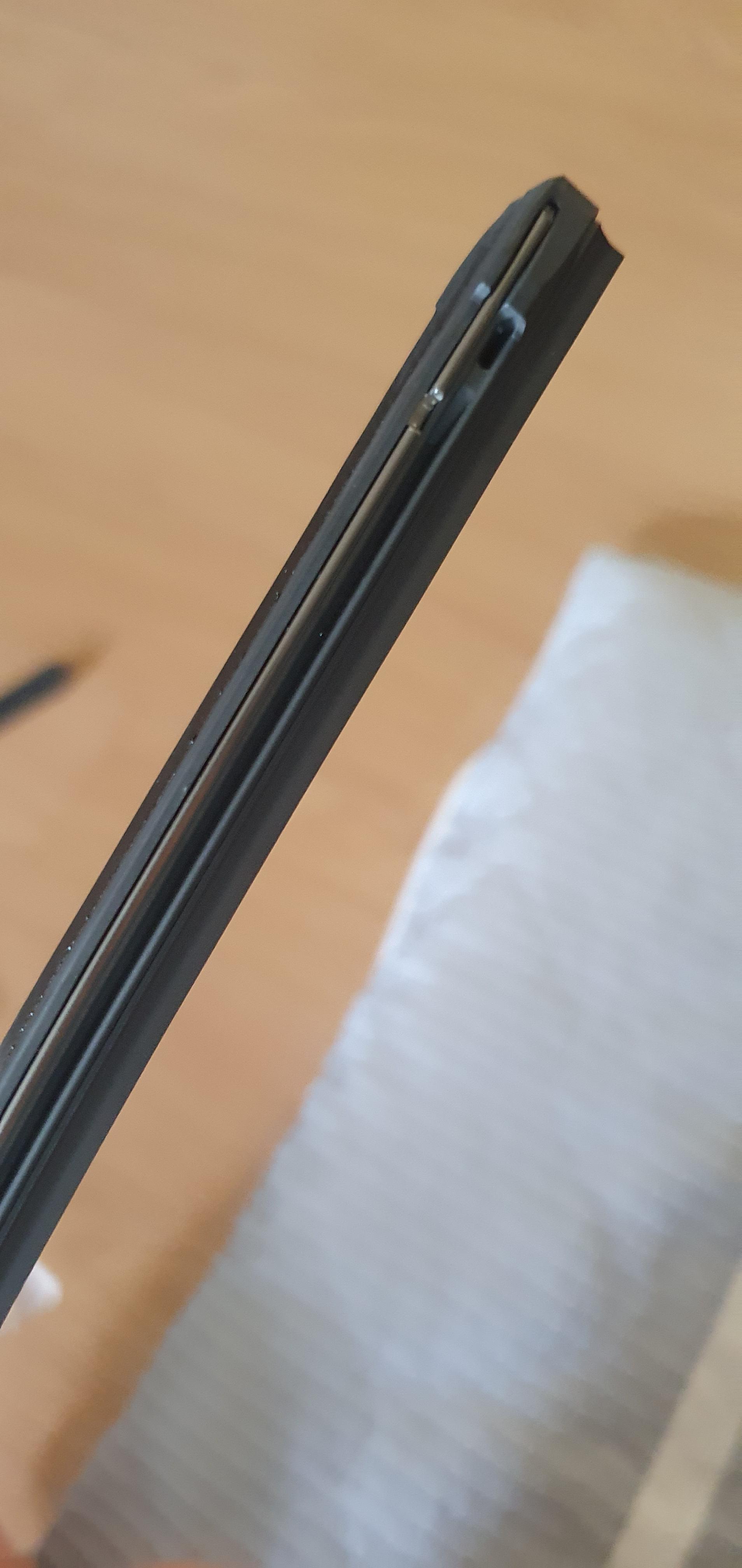 기존 와이퍼에서 고무를 빼는 방법은 약간의 힘을 줘야지 가능했다. 고무에 묻은 때로 손이 더러워진다.꼭 장갑을 끼고 하자.