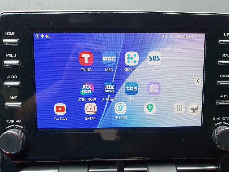 최종 화면은 다음과 같이 나온다. 휴대폰에 설치된 어떤 앱이든지, 차량 모니터에서 직접 실행할 수 있다.