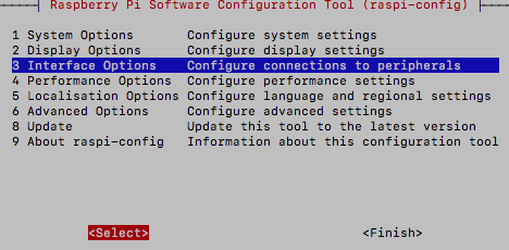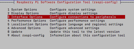"3 Interface Options"를 선택한다.