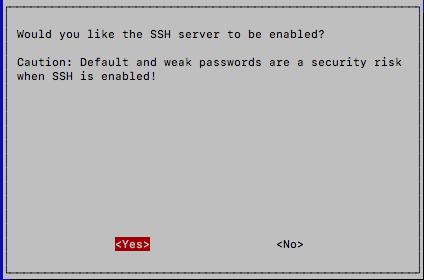 SSH를 enable하는 것으로 선택한다. ("Yes"를 선택)