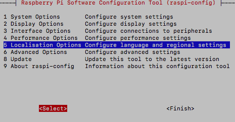첫 화면에서 "5 Localisation Options"을 선택한다.