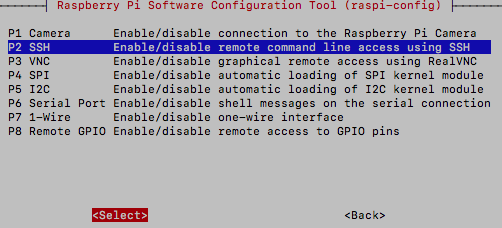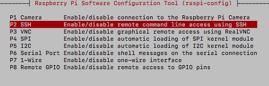 "P2 SSH"를 Enable한다. 내 경우에는 최초에만 원격으로 접속해서 설정하고, 실제 운영할 때는 외부 접속은 차단할 예정이다. 라즈베리파이에서 직접 설정할 계획이면, SSH를 disable시켜둔 상태에서 사용하는 것이 낫다.