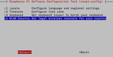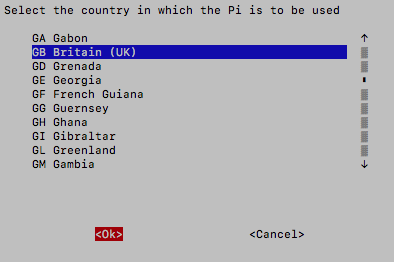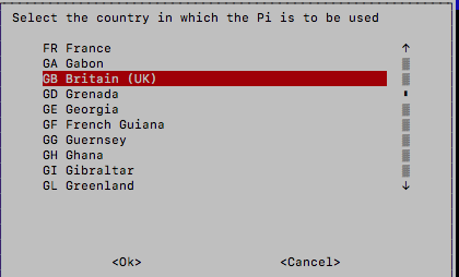 "Locale.."의 "L4 WLAN Country"를 선택한다. 국가는 "GB Britain (UK)"로 선택한다.