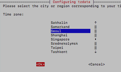 "Locale.."의 "L2 Timezone"을 선택한다. 타임존은 Asia를 선택한 후에 Seoul을 선택한다. S를 선택하면 S도시로 바로 접근할 수 있다.