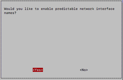 예측 가능한 네트워크 이름을 사용할 것인지를 묻는데, 언제나 긍정적인 답변을 해야겠지만, 이번에만 NO를 선택한다. YES로 설정하면, 무선랜카드의 MAC주소로 Network Device 명칭이 부여된다. 맥주소가 12:34:56:78:9a:bc 라면, 무선랜의 이름이 enx123456789abc 라고 만들어진다. 굳이 이렇게 사용할 필요까지는 없을 것 같다.