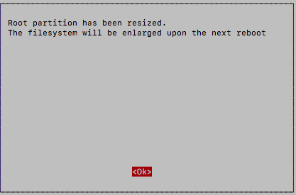 첫메뉴에서 "6 Advanced Options"를 선택하고, "A1 Expand Filesystem"을 선택한다. 리부팅한 후에 적용된다는 화면이 나온다.