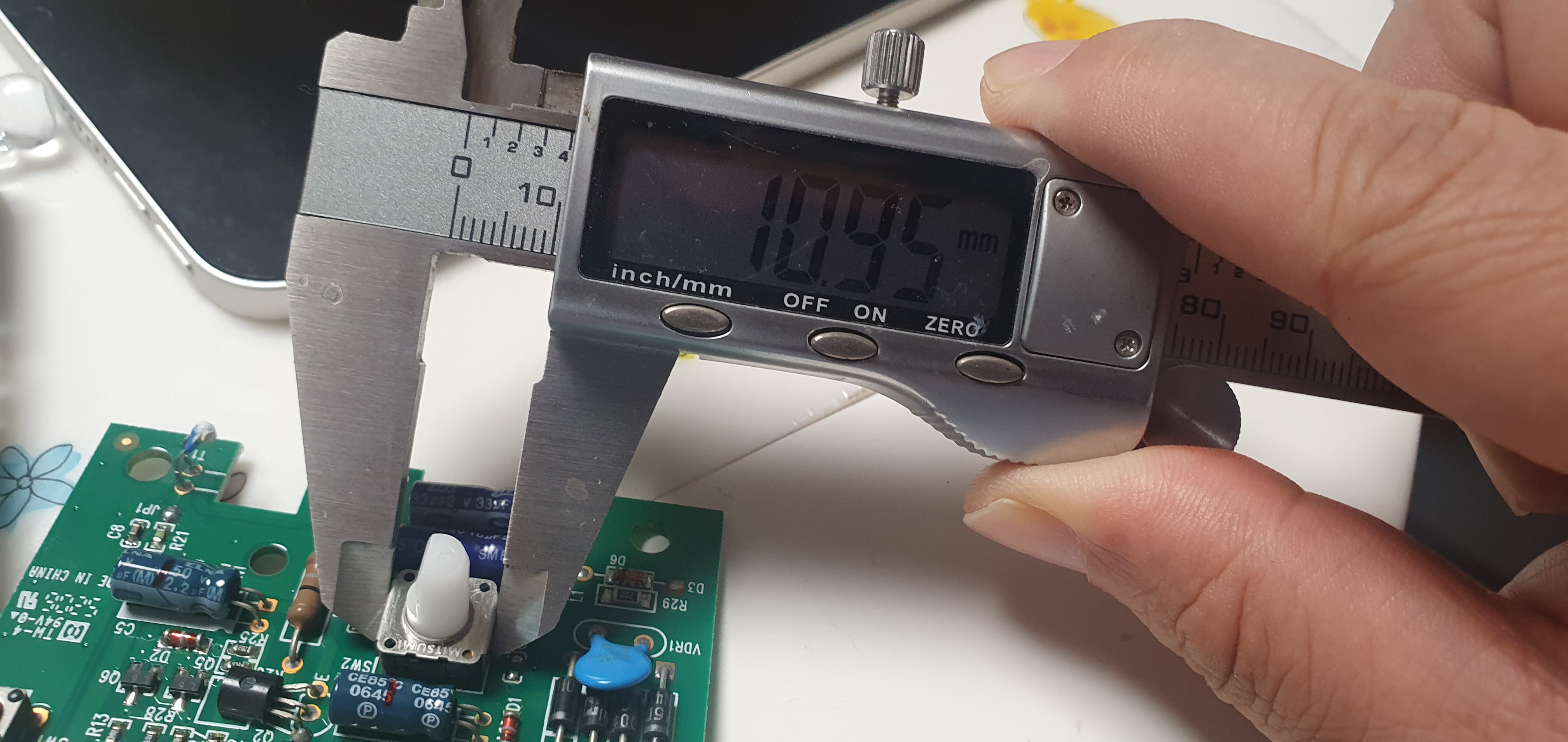 아래와 같이 일일이 버니어캘리퍼스로 측정했다.. ㅎㅎ 푸시 스위치를 측정한 사진은 없네...
