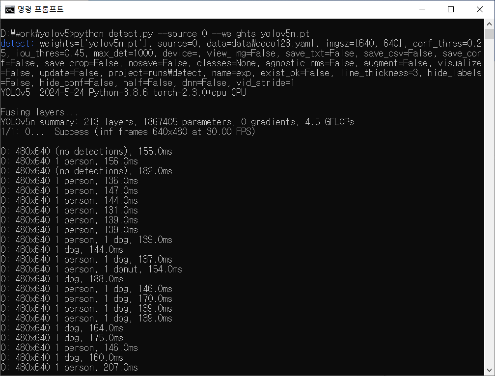 - 명령: python detect.py --source 0