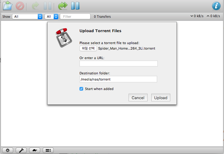 라. 'Upload'버튼을 선택하여 토렌트 파일을 다운로드 받고 있다....
