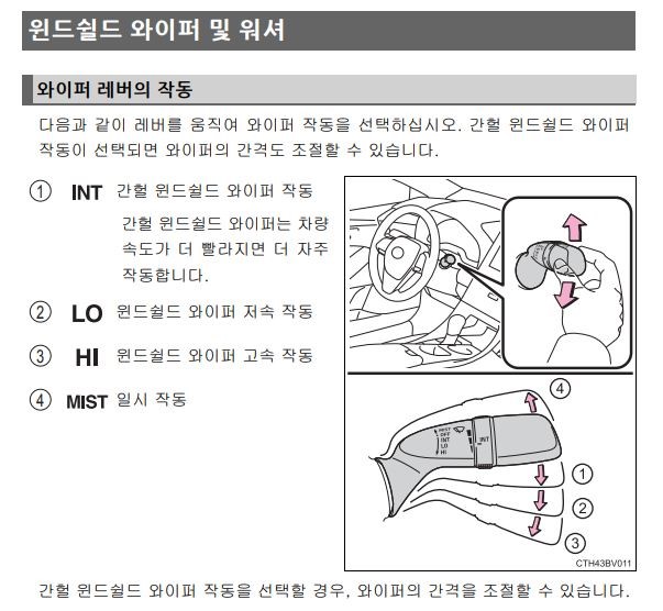도요타 아발론 와이퍼 세우는 방법