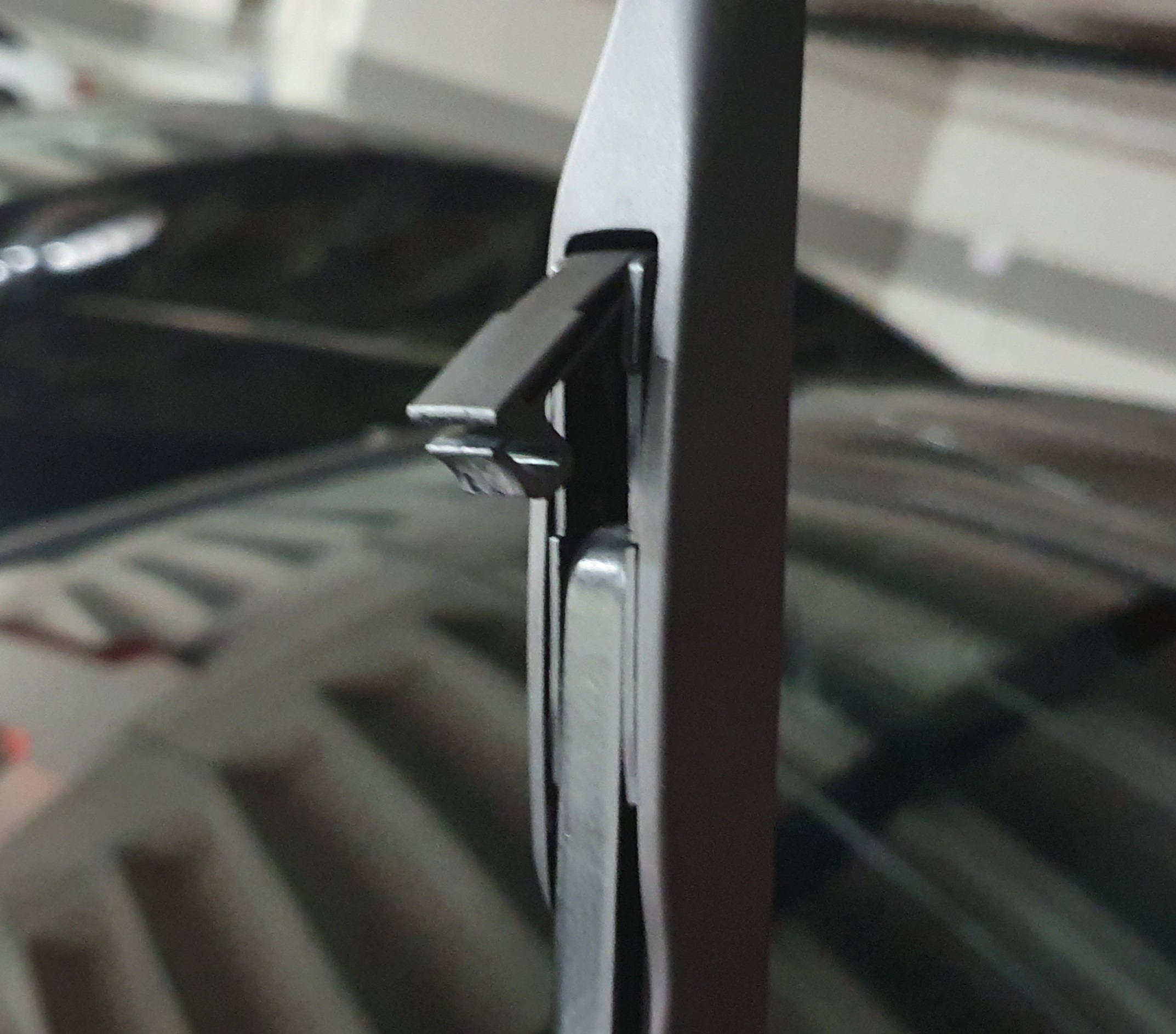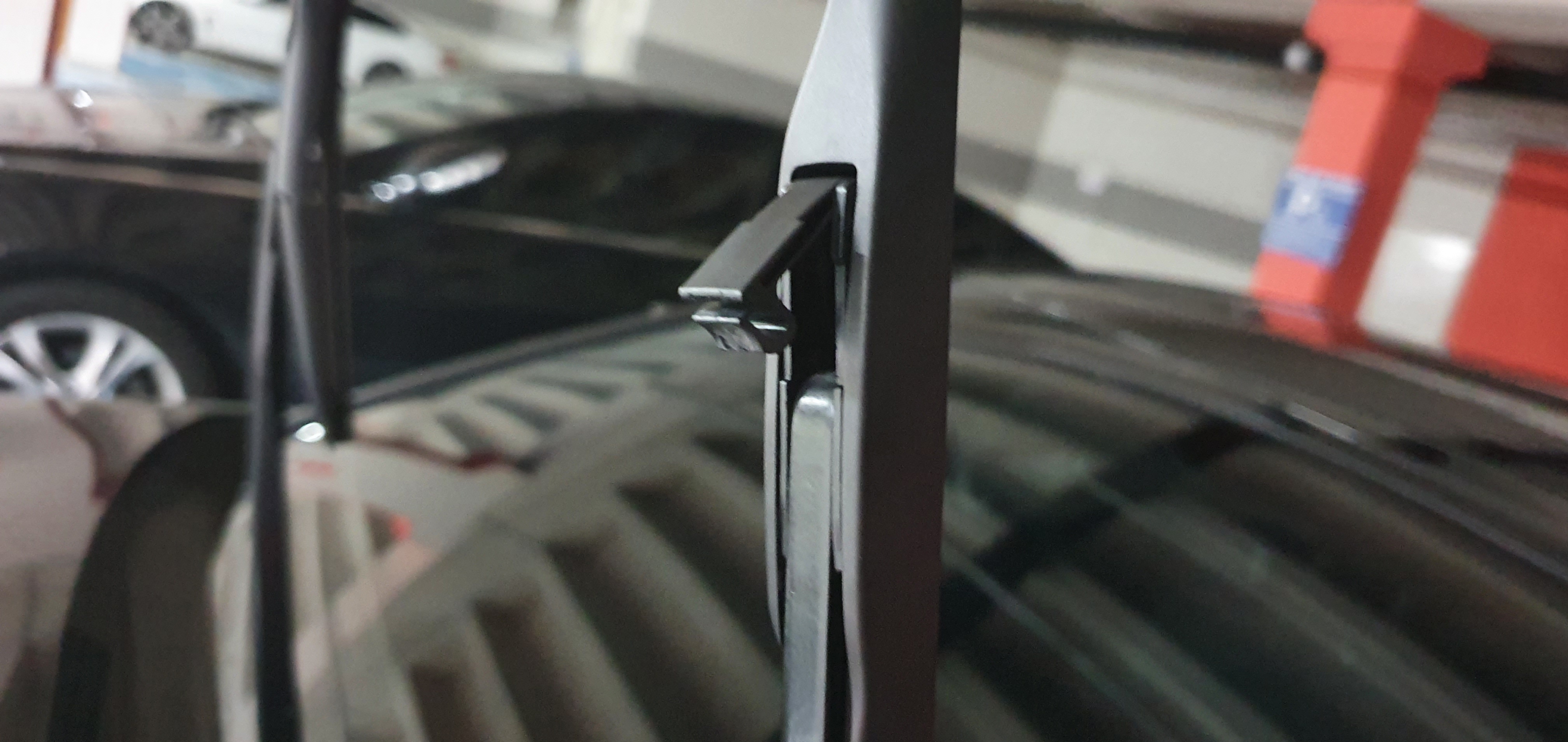 손톱으로는 뻑뻑해서 안올려졌는데.. 주변에 드라이버는 보이지 않고 해서 스마트키에 있는 차키를 빼서 이걸로 들어올려봤다.